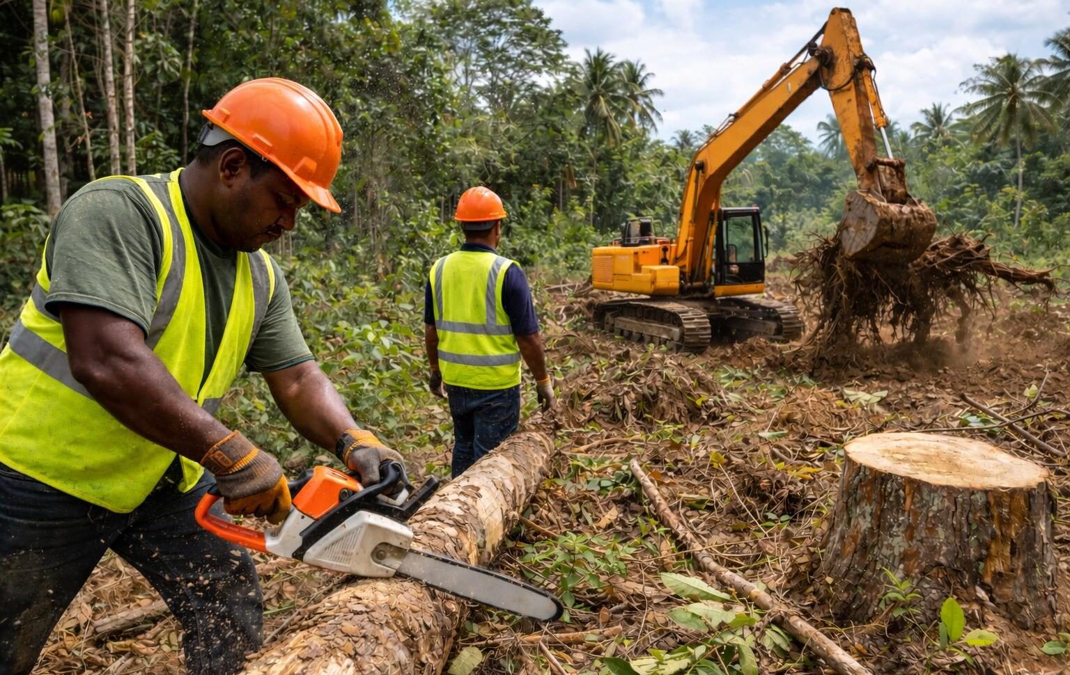 Het verantwoord verwijderen van begroeiing en bomen ter voorbereiding van bouw- en infrastructurele projecten.